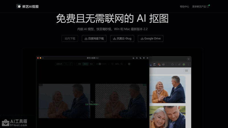 鲜艺AI抠图是一款功能强大的免费AI抠图工具,能快速去除图片背景,支持本地和在线图片处理。鲜艺AI抠图具备毫秒级处理速度、无需联网确保隐私安全、支持批量操作、多格式兼容,以及Photoshop二次编辑功能。用户界面简洁直观,支持皮肤和语言切换,支持Windows和macOS系统,广受创意工作者好评。