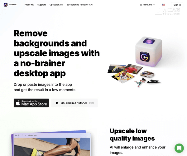 GoProd 是 Icons8 推出的一款集AI图像无损放大和背景移除于一体的Mac应用程序,在人工智能的支持下,用户只需简单的操作,把想要编辑的图像拖放到应用窗口,片刻后就能得到所需的图像。