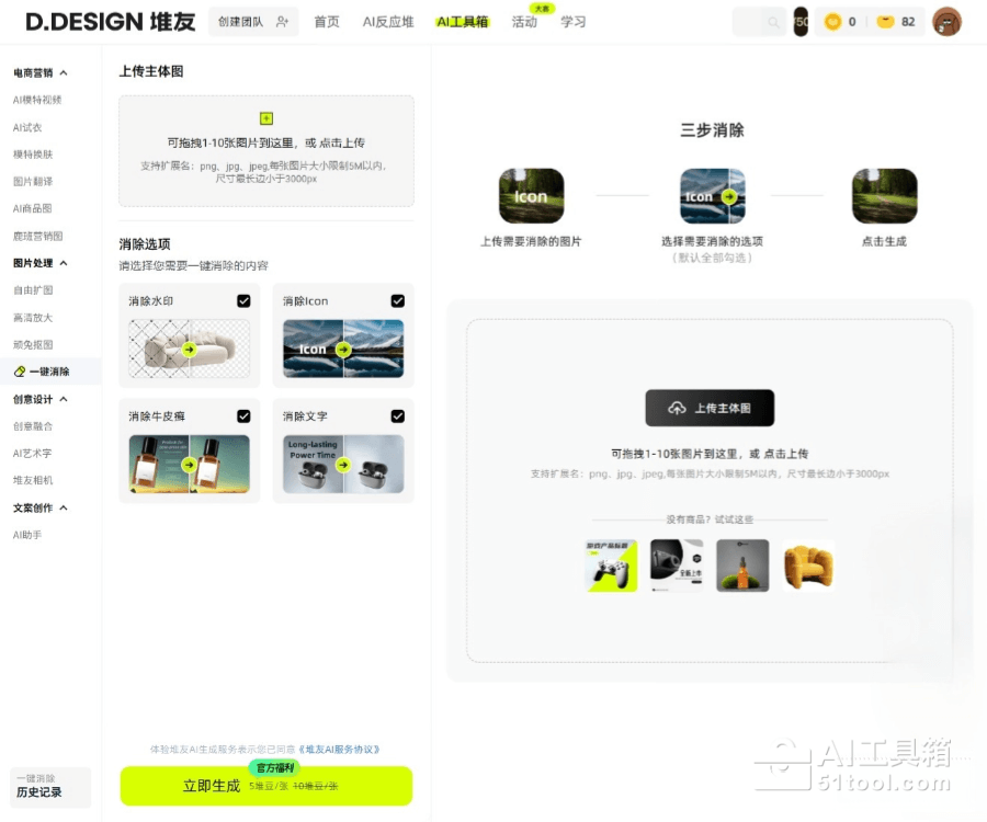 - 访问网站:访问堆友AI消除官网 https://d.design/toolbox/elimination ,注册登录账号。