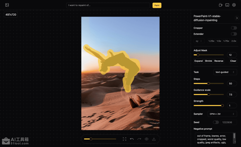 iopaint start命令运行IOPaint(若要切换模型则在后面加上参数–model=xxx) - 浏览器访问