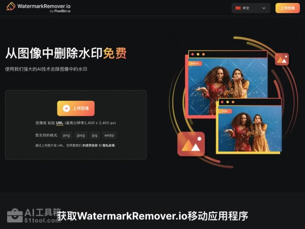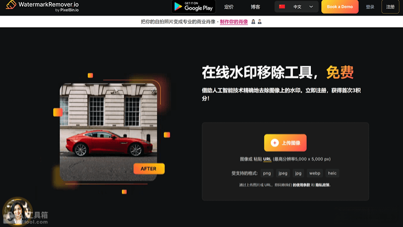 WatermarkRemover是一个AI在线水印移除工具,可以帮助用户从图片中自动检测并去除水印。工具支持多种图像格式,包括JPG、JPEG、PNG、WEBP和HEIC。用户可以通过上传图片到WatermarkRemover.io的网站,会在几秒钟内自动去除水印,支持用户下载无水印的图片。