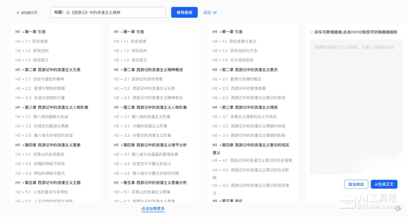 - AI中英文论文创作:平台能够快速生成万字级别的原创论文初稿,内容全面,涵盖封面、摘要、目录、参考文献和致谢等论文必备元素。