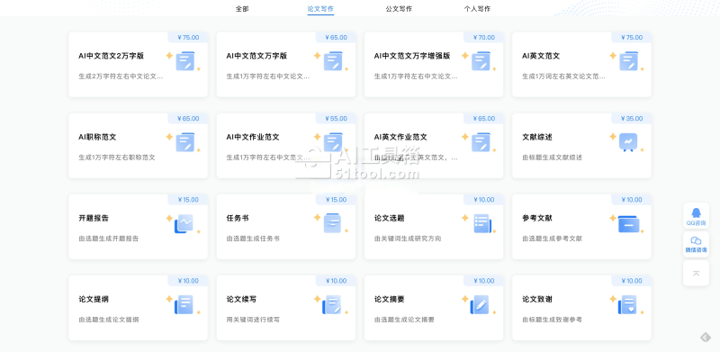 - 多版块生成支持:提供文献综述、开题报告、任务书、论文选题、参考文献、论文提纲、论文续写、论文摘要、论文致谢等多个论文组成部分的生成服务。