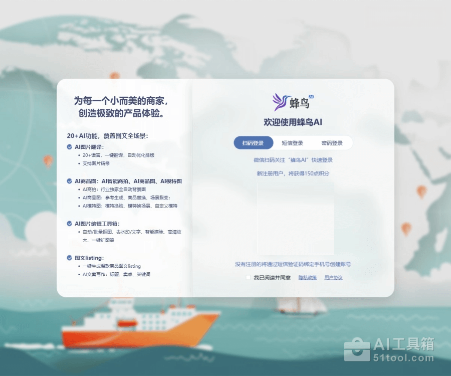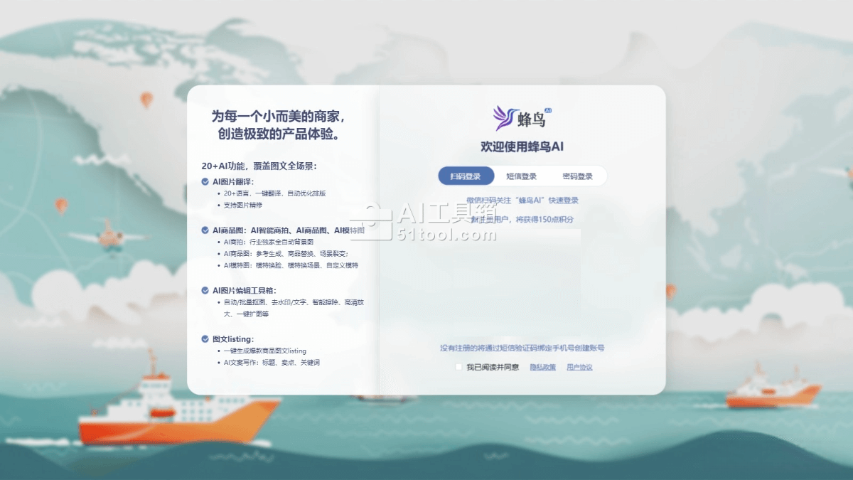 蜂鸟AI是赶海科技推出的跨境电商AI营销工具。蜂鸟AI基于领先的AI视觉模型和多模态技术,为商家提供AI翻译(支持图片和视频)、AI图片创作(包括素材生成、编辑排版、智能商拍等)及AI文案写作等功能。