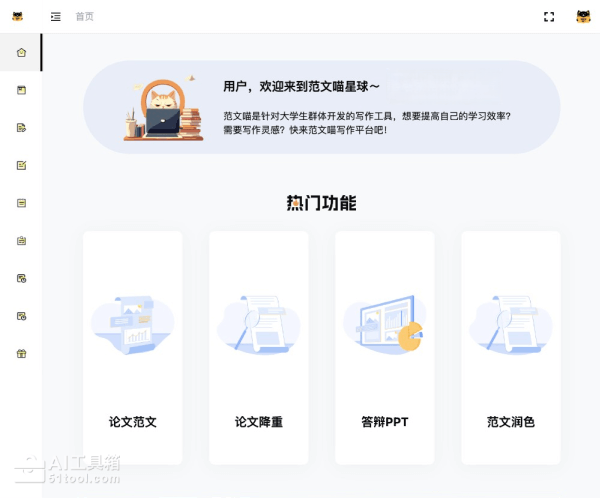 范文喵是一款专为大学生打造的AI论文生成工具,旨在借助AI技术提高学生的写作能力和效率。该工具构建了一个全方位的沉浸式论文写作平台,覆盖从选题、开题到范文创作、毕业答辩的全过程,帮助大学生节省了大量时间,提高了他们的学术写作效率和水平,是大学生学术研究道路上的得力助手。