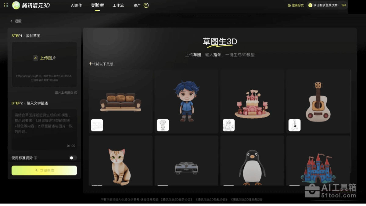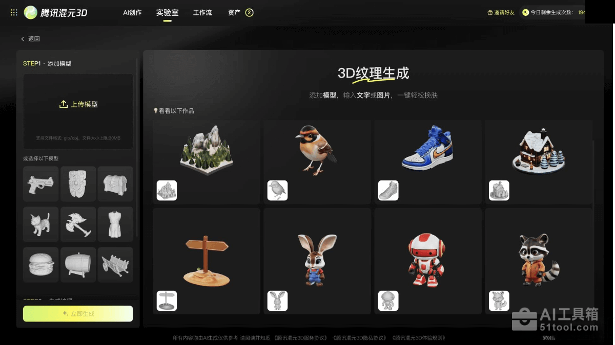 - 官网地址:https://3d.hunyuan.tencent.com/