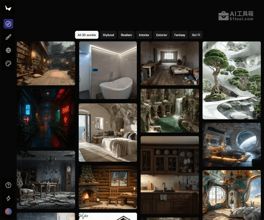 - Chisel 工具: Chisel 工具支持用户使用基础几何体(如立方体、平面)搭建3D框架,AI会根据用户提供的风格描述自动填充细节。同一框架能生成多种不同风格的世界,极大地提升创作的灵活性。