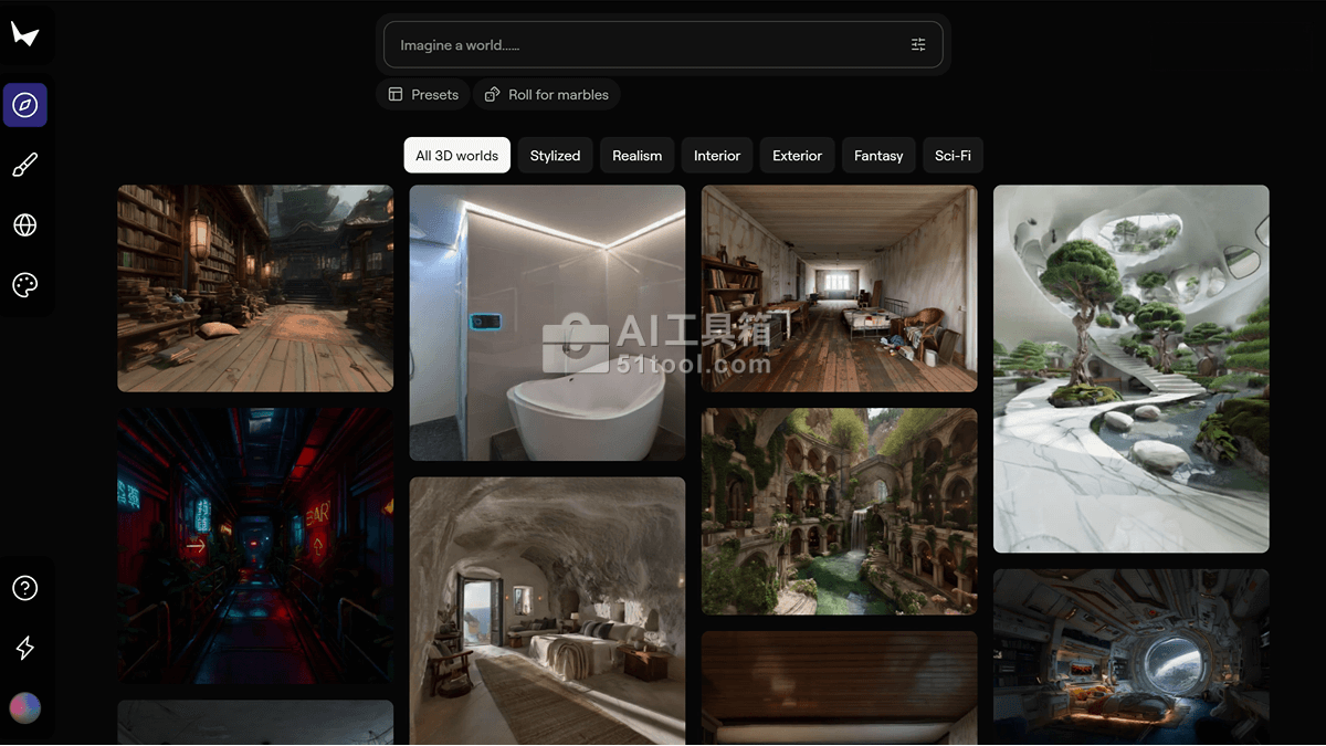 Marble 是 World Labs推出的3D世界生成平台,能通过简单的文本描述、图片、视频或3D结构生成高保真、持久的3D世界。Marble支持多种输入方式,包括文本提示、单张或多张图片、全景图、视频和基础3D布局。Marble 提供强大的编辑功能,如全景编辑、点击扩展和生成世界变体,帮助用户精细调整创作。Marble支持用户将生成的世界导出为多种格式,用于网页分享、VR体验或开发资产。Marble 适合艺术家、设计师和任何对3D世界创作感兴趣的人。