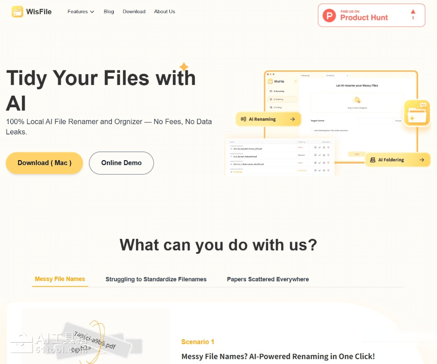 - 智能重命名:基于识别的关键词,Wisfile自动为文件生成有意义的文件名,同时支持用户选择预设模板或自定义命名规则,满足个性化需求。