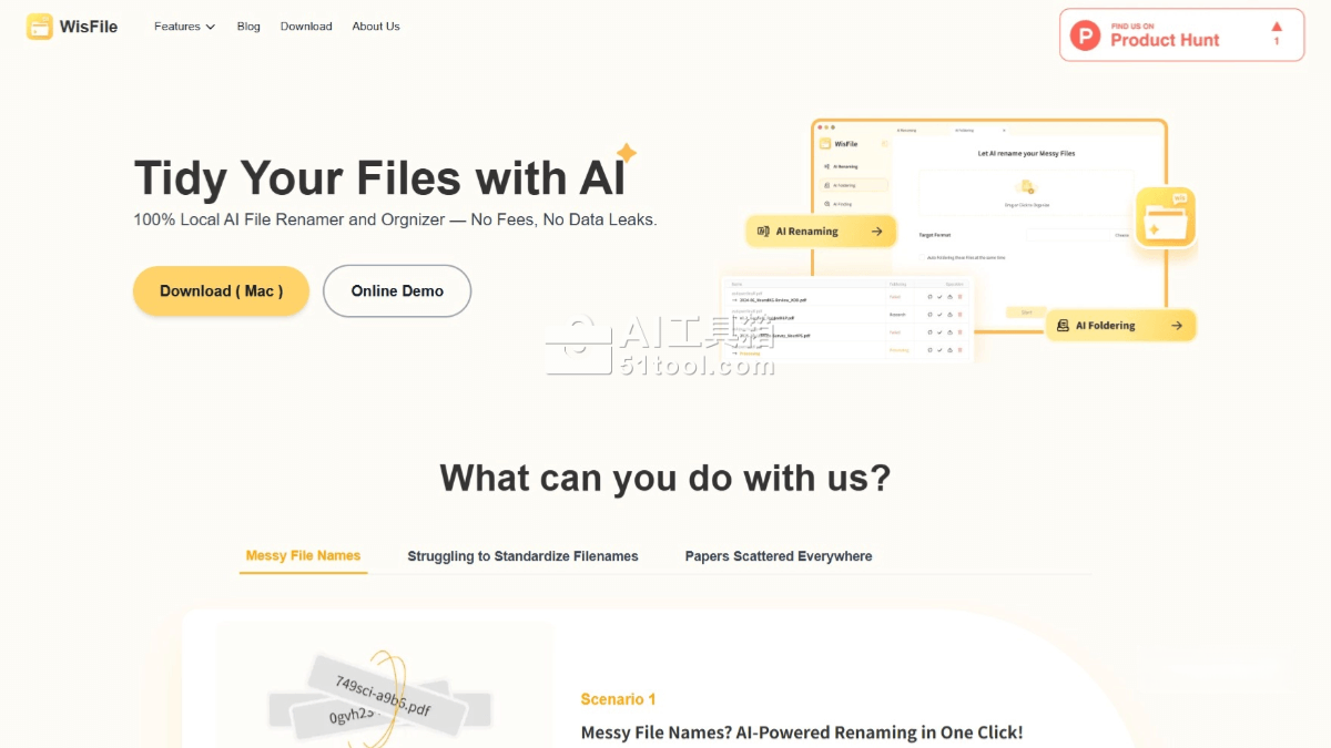 Wisfile是免费的本地AI文件管理工具,专为解决电脑文件混乱、命名无序和手动整理耗时的问题而设计。Wisfile能够智能识别文件内容关键词,如Word、PDF等格式文件,支持批量重命名并提供灵活的命名模板和自定义规则。所有AI分析在本地完成,无需联网,确保数据隐私安全。通过Wisfile,用户能快速整理文件,提升文件管理效率,让文件系统井井有条。
