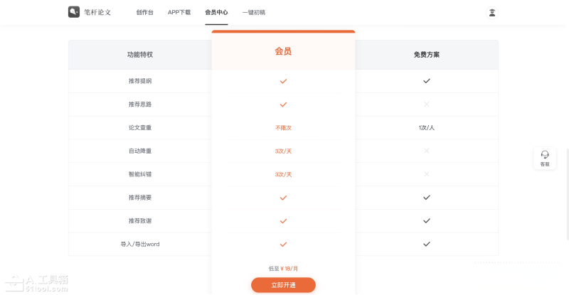 - 会员版:28元一个月,73元三个月,168元一年,可使用推荐提纲、推荐思路、不限次论文查重、自动降重每天3次、智能纠错每天3次、推荐摘要、推荐致谢、导入/导出Word