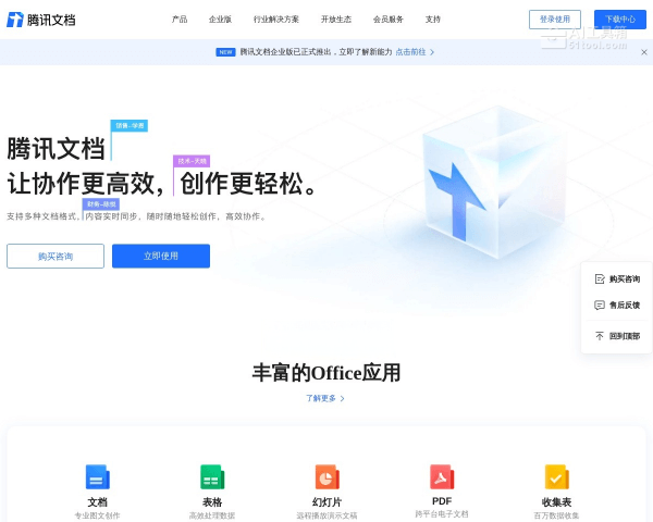 腾讯文档智能助手是腾讯推出的一款AI文档生成和辅助工具,可以帮助用户快速生成多种类型文档、对文档内容进行问答和处理,覆盖文档、表格、幻灯片、收集表、PDF、思维导图、智能文档、智能表格等产品,旨在为用户提供一站式的智能文档创作与处理解决方案。