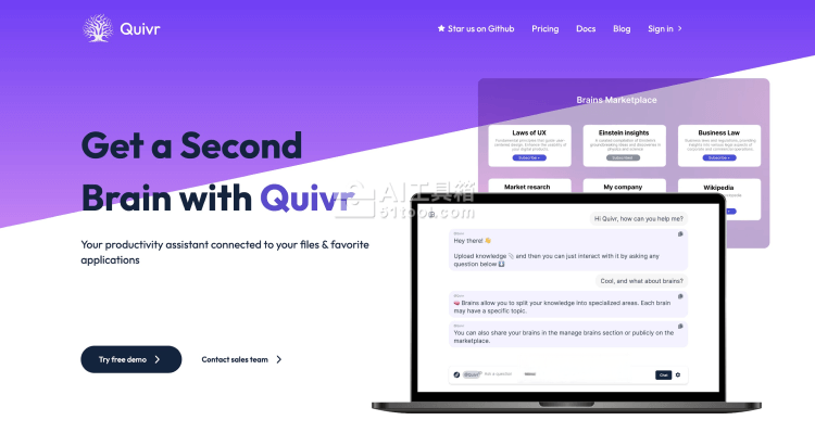 - 访问Quivr的官网(quivr.app),点击Try free demo进行注册登录