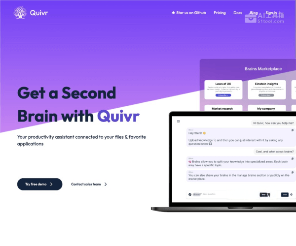 Quivr AI 是一个开源的本地知识库搭建解决方案,旨在利用大模型和生成式AI帮助用户存储和检索非结构化信息,构建用户知识的“第二大脑”。该工具允许用户上传各种类型的文件,如文本、Markdown、PDF、音频和视频,并将这些文件向量化后存储在云端。用户可以通过自然语言对话的方式向 Quivr 提问,以获取与上传文件相关的信息。
