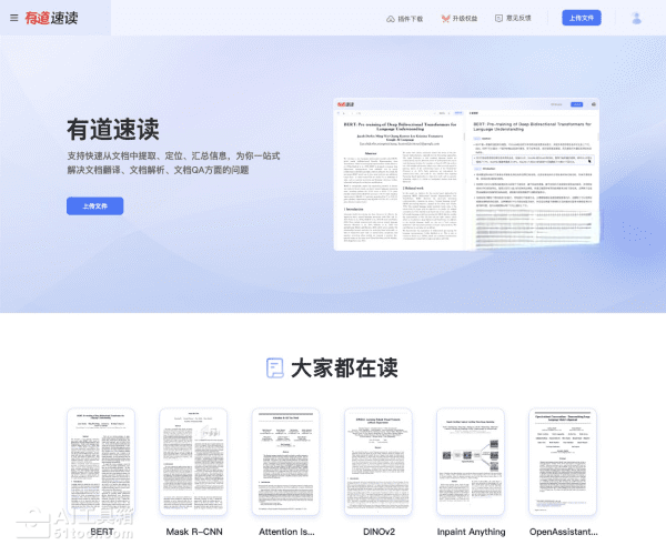 - 访问有道速读的官网(read.youdao.com),点击上传文件