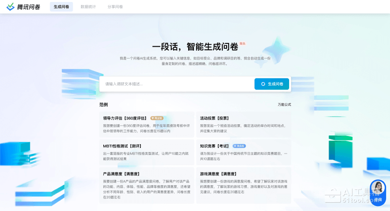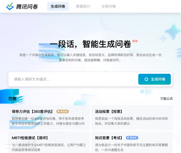 - 访问腾讯问卷-AI生成文卷的官网(wj.qq.com/ai/generate.html)