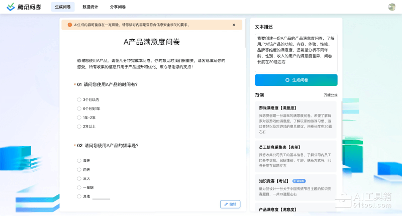- 定制化:用户可以根据自己的具体需求定制问卷,无论是简单的信息收集还是复杂的市场调研,AI生成问卷都能提供相应的支持。