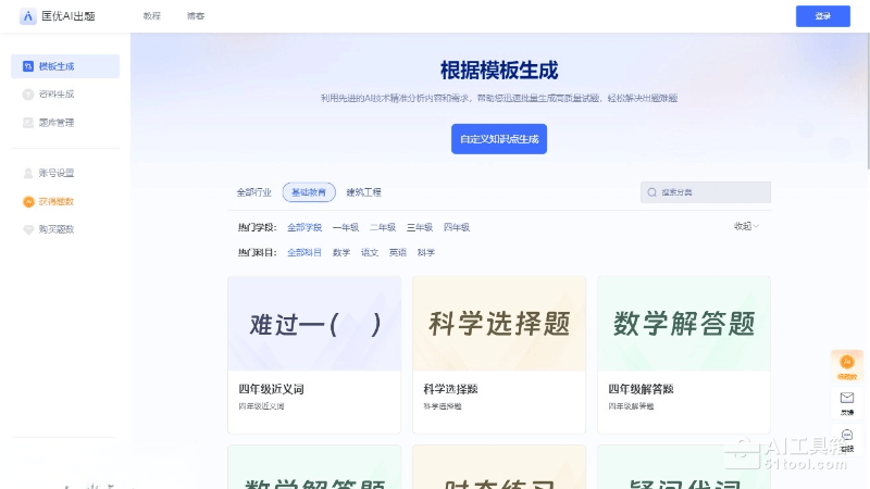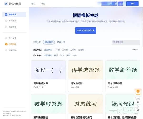 - 模板生成:提供多种预设的出题模板,用户选择适合的模板快速生成试题。