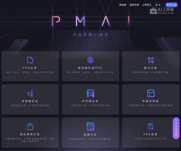 PMAI是一个面向产品经理的AI助手,提供帮助产品经理一键生成PRD文档、业务问题的解决方案、业务流程图、生成SQL代码等实用功能,让产品经理节省写各种产品文档的时间,将更多的精力放在构思上,提升工作效率,让工作更轻松。