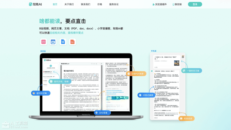 - 阅读和总结各种类型的内容,包括B站视频、网页文章、PDF文档、小宇宙播客等,自动总结摘要