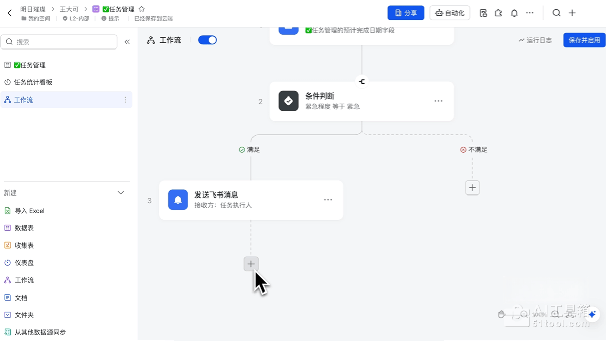 - 新建工作流:打开多维表格,点击左下角的“工作流”新建工作流。