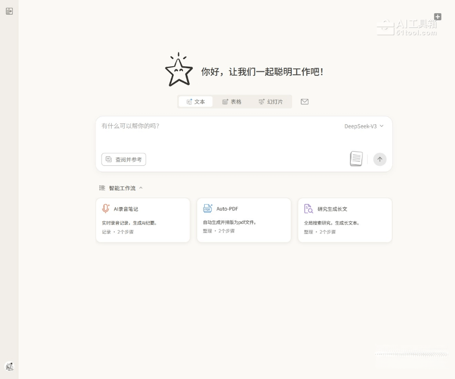 智能工作流:连接PDF生成、研究、会议等场景,提供全新的自动化工作体验。