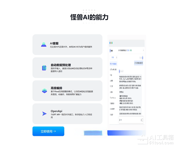 怪兽AI知识库是集企业知识管理与智能AI客服于一体的系统。支持PDF、Word、PPT等多种文件格式,实现自动化数据预处理和高级流程编排。通过智能AI问答机器人,怪兽AI能够24小时提供不间断服务,减轻人工压力,提升客户满意度。系统具备零代码搭建、团队协同、权限管理等特性,助力企业轻松构建和维护知识库。