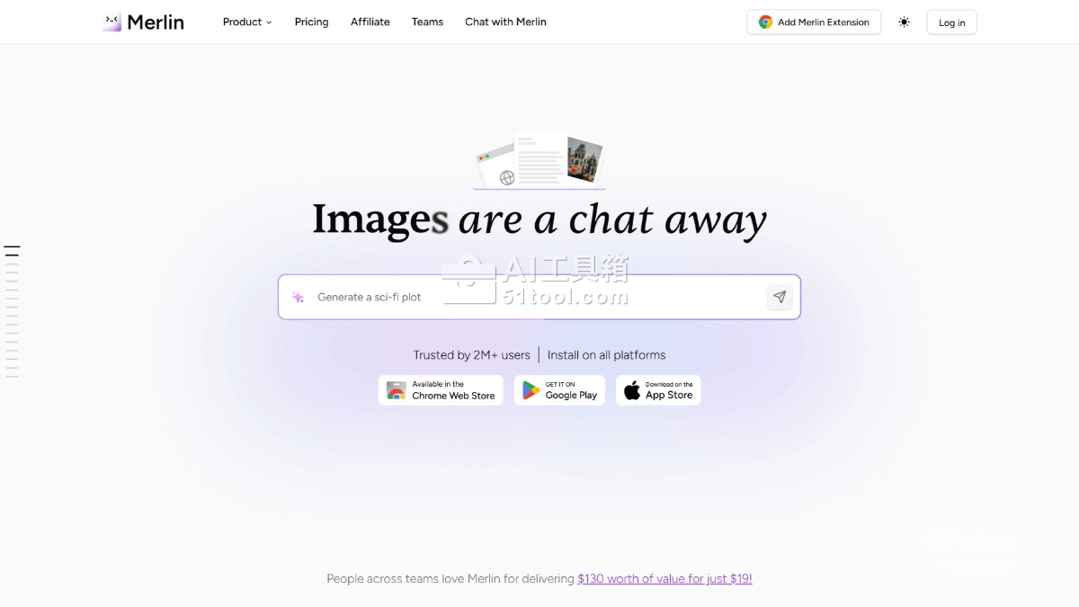 Merlin 是强大的 AI 聊天助手,集成多种先进 AI 模型,如 ChatGPT、Gemini 等。Merlin支持一键研究、写作、总结和翻译,覆盖 128 种语言,适用网页、视频和文档等多种内容形式。Merlin 提供跨平台使用(Chrome、iOS、Android、Windows 和 Mac),并配备 70 多种 AI 工具,如 AI 检测器、写作辅助、翻译辅助等。Merlin支持实时网页和文件集成、上下文智能助手、保存提示、网页聊天等功能,帮助用户高效完成任务。Merlin 帮助学生、专业人士和创意工作者显著提升工作效率和创造力。