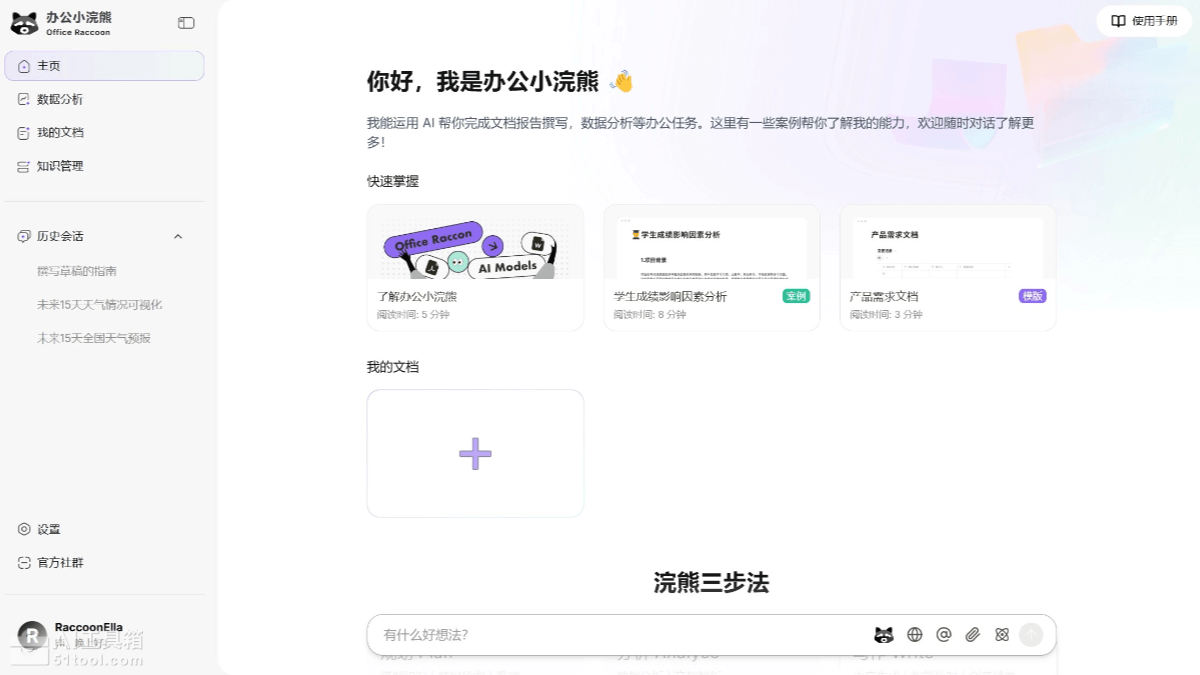 办公小浣熊是商汤科技推出的AI办公助手,办公小浣熊2.0版本全新升级,将 AI 大模型能力与文档编辑、数据分析场景深度结合,为用户提供一站式创作、分析和知识管理平台。 新版本的核心功能围绕“浣熊三步法(PAW)”展开,即规划(Plan)、分析(Analyze)、写作(Write),覆盖工作和学习的多个方面。成为“AI原生一站式创作空间”,用户可以通过对话式的交互,完成资料的检索收集、文档的撰写编辑、数据的处理分析;可以在单个创作空间内,借助 AI 大模型完成从思路策划、框架生成、内容创作、方案输出的全流程任务;可以搭建个人线上知识库,完成文档、数据、代码的管理与检索。