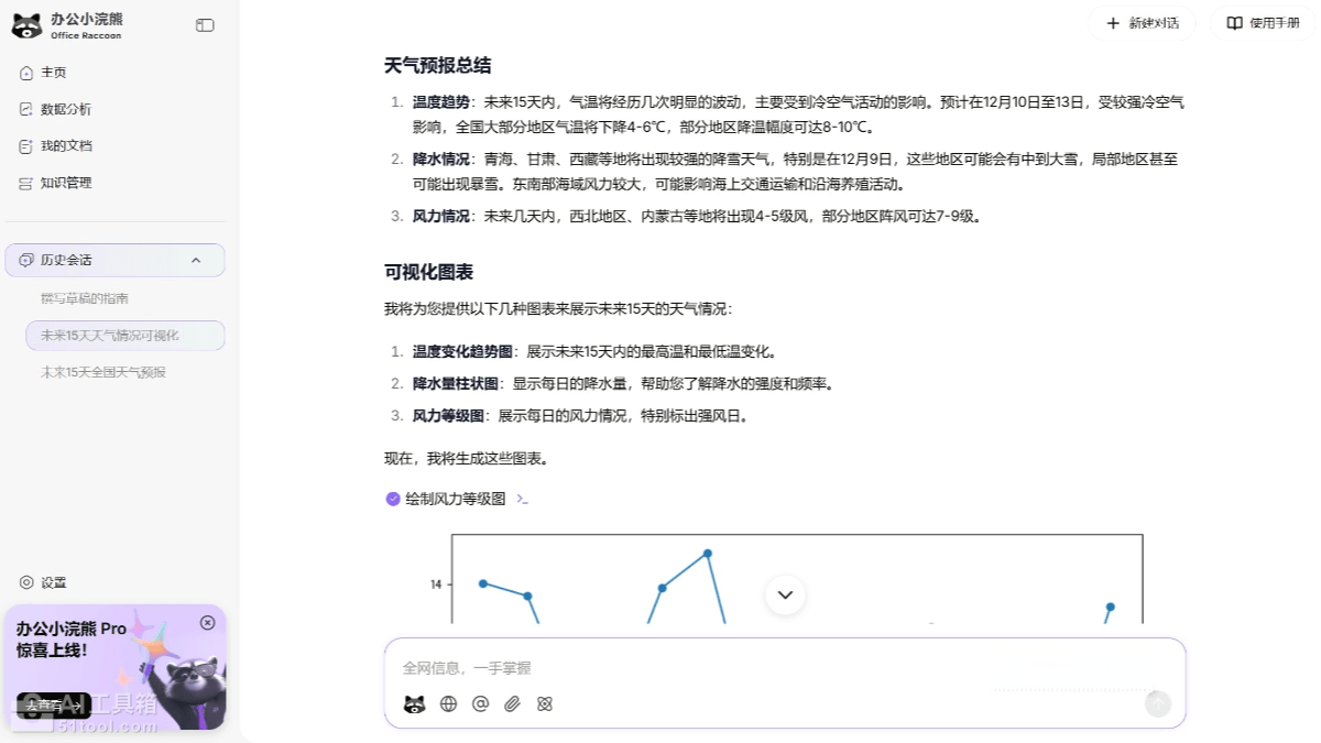 - 数据可视化:办公小浣熊能够将复杂的数据集转化为直观的图表,如柱状图、折线图和饼状图,数据分析结果更加易于理解和分享。