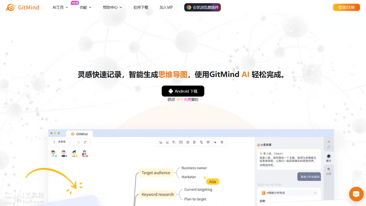GitMind思乎是新一代的 AI 智能思维导图协作工具。工具支持多种图表类型,如思维导图、流程图、组织结构图等,同时提供强大的 AI 功能,包括文字转思维导图、PDF 转思维导图、语音转文字等。GitMind思乎能帮助用户快速记录灵感、整理思路、激发创造力,支持云分享和团队协作,适合个人和团队使用。GitMind思乎通过可视化的方式,让知识管理更加高效,帮助用户构建自己的“第二大脑”。GitMind思乎支持多种客户端使用,网页端、手机端和iPad端均可体验。