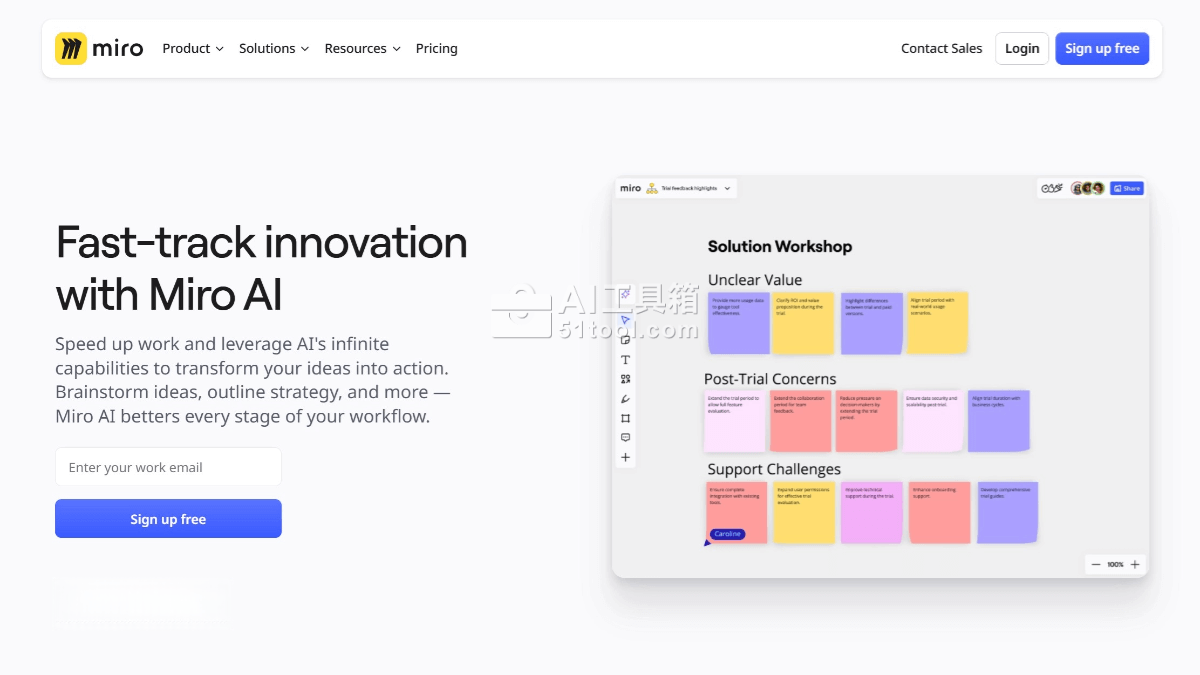 - 产品设计与用户研究:设计师可以用 Miro AI 创建交互式原型、用户流程图和用户旅程图,支持从创意到原型的快速转化。