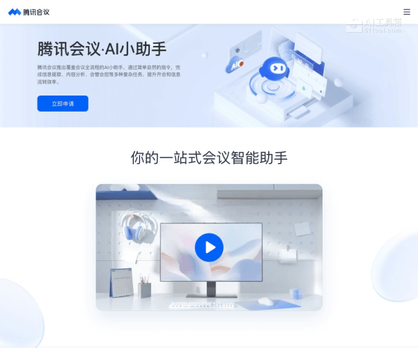 - 访问腾讯会议AI小助手的官网,点击立即申请