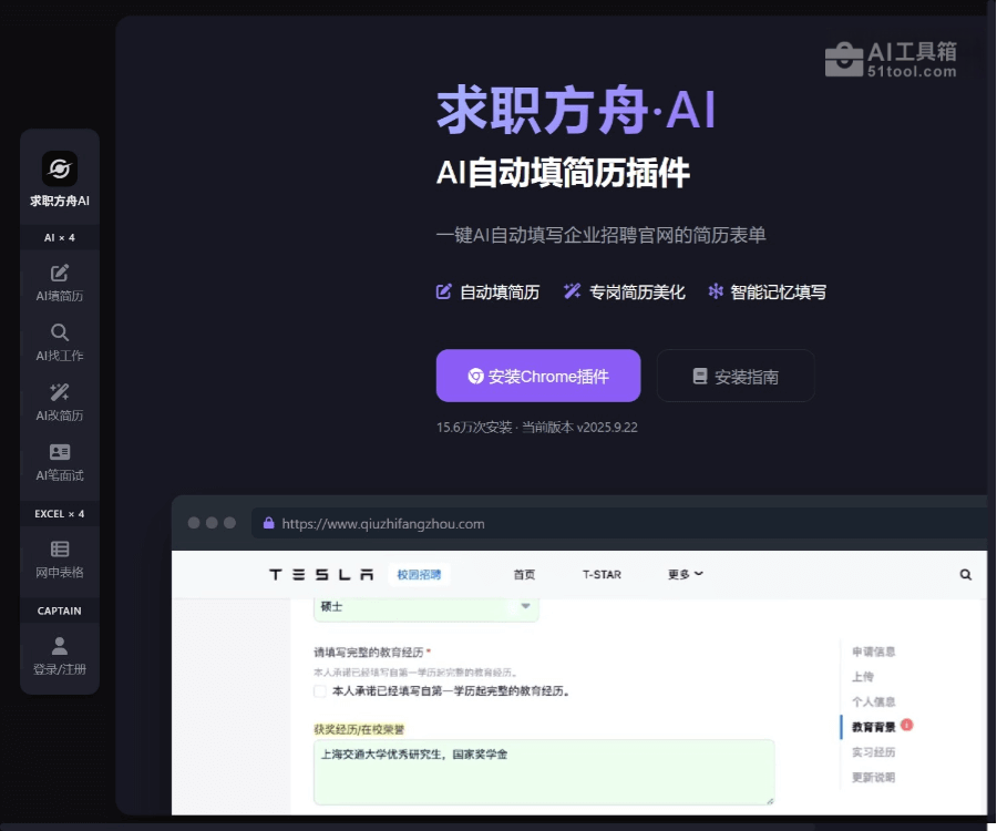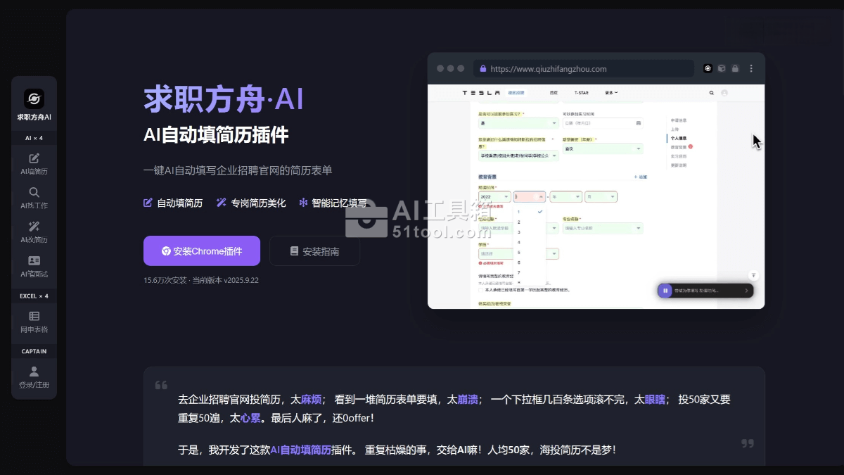 AI自动填简历:一键自动填写企业招聘官网的简历表单,智能识别表单结构,自动填充信息,节省时间。