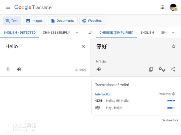 Google 翻译是谷歌推出的多语言翻译工具,支持超过100种语言。支持用户输入文本、上传文档或翻译网页,工具能自动检测语言并提供翻译结果。