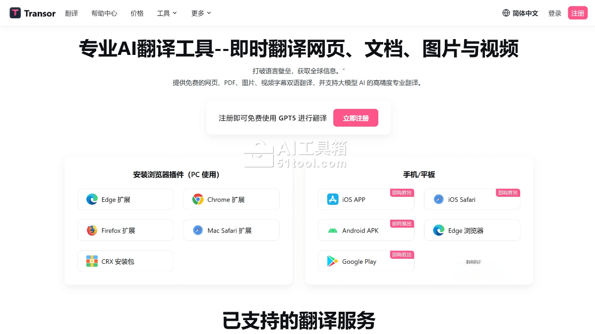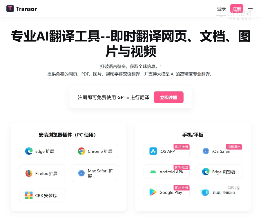 Transor沉浸式翻译是专业的AI翻译工具,为用户提供网页、字幕、PDF、图片等多场景的实时翻译服务。通过智能识别网页核心内容区域,实现低侵入性的双语对照翻译,为用户带来沉浸式外文网页阅读体验。Transor内置了OpenAI(ChatGPT)、DeepSeek、Google Gemini等十余种顶尖翻译服务,是全球支持服务最丰富的网页翻译插件之一。支持YouTube、Netflix等主流视频网站的实时双语字幕翻译,让用户在观看视频时既能看懂内容,又能提升外语水平。Transor首创免费PDF翻译,支持文档双语阅读,无论是学术论文还是商业合同,能一键获得专业翻译结果。