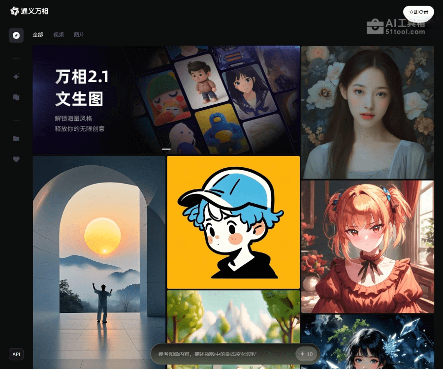 - 访问平台:访问通义万相的官网 https://tongyi.aliyun.com/wanxiang/ 。