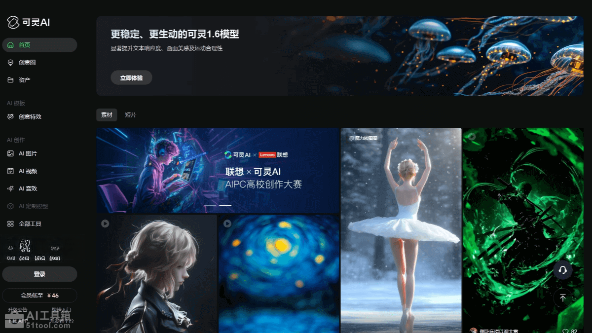 - 选择功能:在网站首页,可以选择“AI图片”或“AI视频”功能。