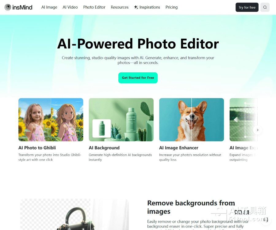 insMind是稿定面向全球市场推出的新一代AI图片编辑工具。insMind提供多样化的编辑功能,如背景移除、图像增强、风格转换等,支持用户一键生成类似作品,简化设计流程。insMind具备批量编辑能力,可同时处理多张图片,提高效率,适合电商、社交媒体和个人创作者使用。insMind有强大的 AI 功能,让非专业人士能轻松制作出专业级别的图像和视频内容。