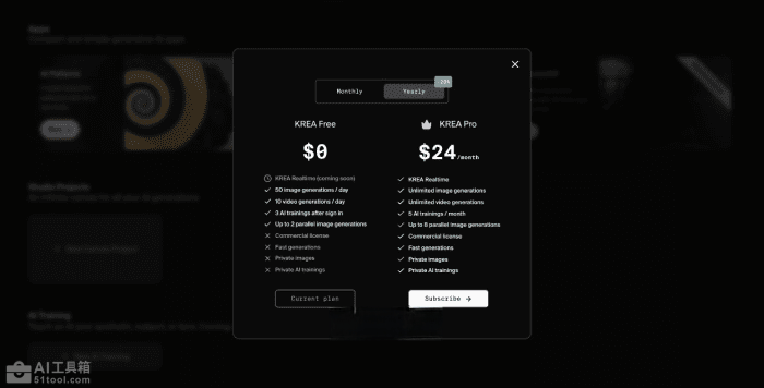 Krea AI的产品价格