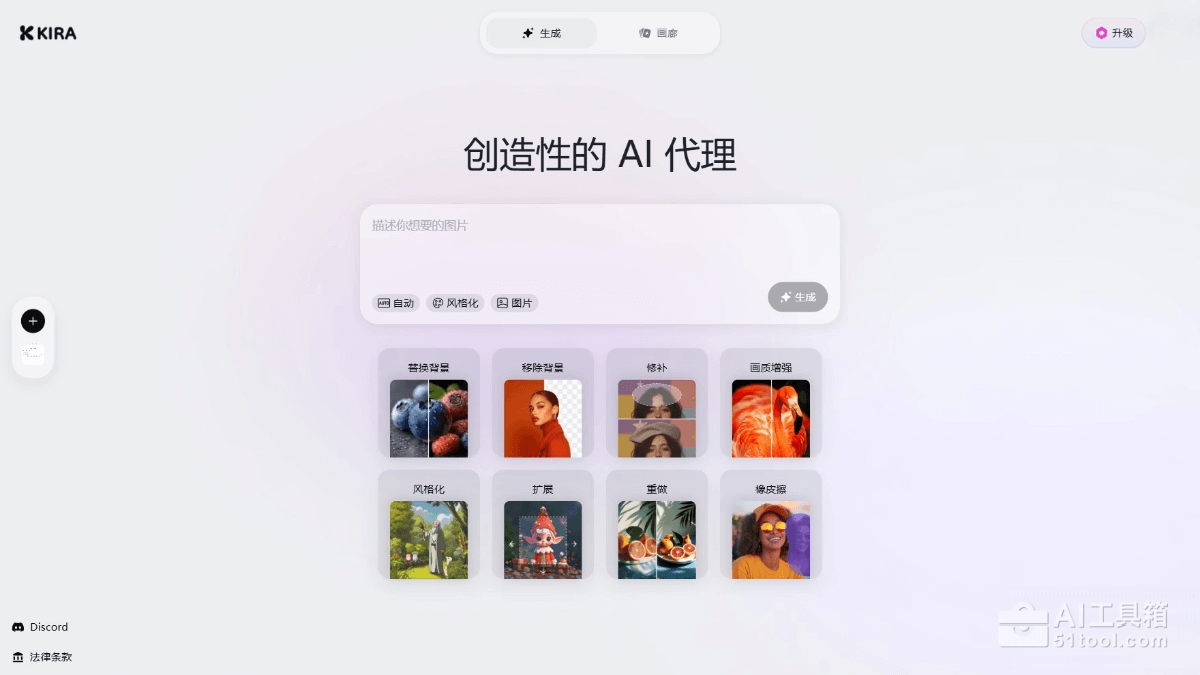 - AI 生成:输入文字描述,Kira 根据描述生成全新的图片。