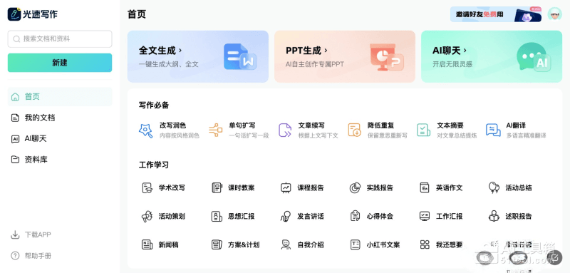 - 你也可以下载光速写作的APP版本,在手机上体验