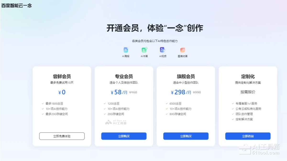 百度智能云一念产品定价