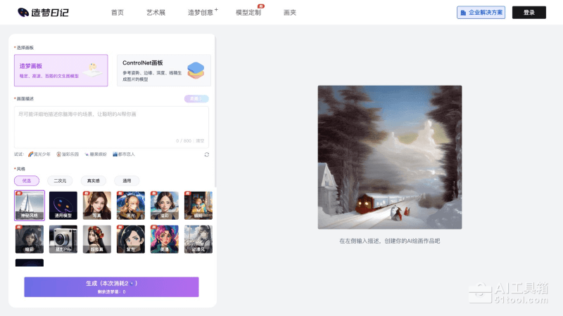 造梦日记的使用操作简单,生成图像快,支持中英文输入提示词。