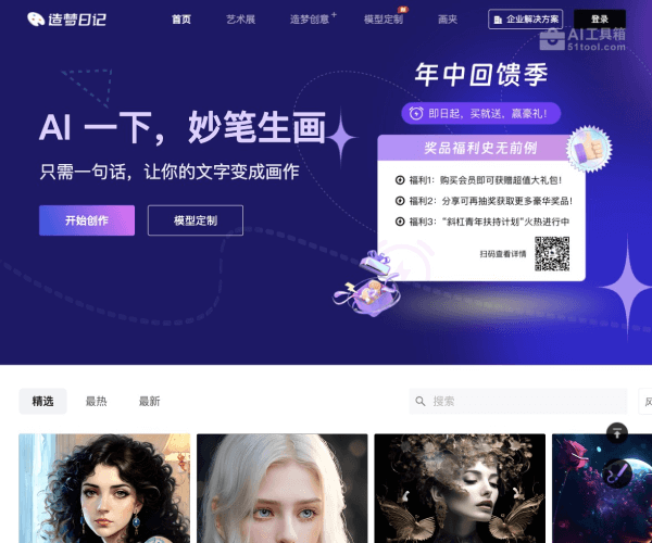 造梦日记是一款基于AI算法、输入文字或图片即可生成高质量图片的平台,由西湖大学深度学习实验室和西湖心辰(Friday AI 写作助手背后的团队)联合出品,超强算力,超快出图,目前支持微信小程序和网页端等。