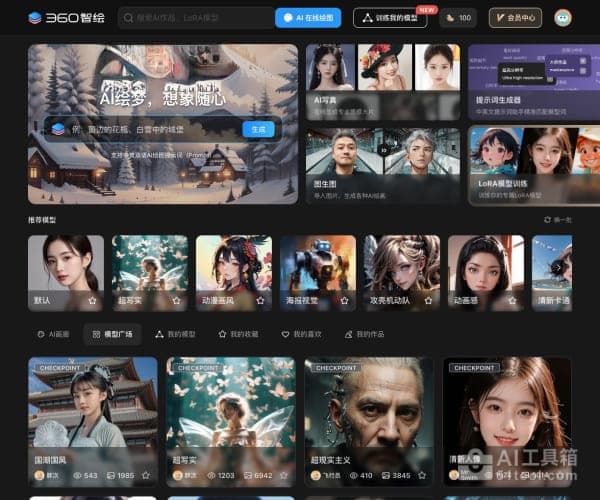 - 平台提供了丰富的模型库:360智绘提供国风、写实、动画、奇幻CG、3D、多彩等多种风格的模型