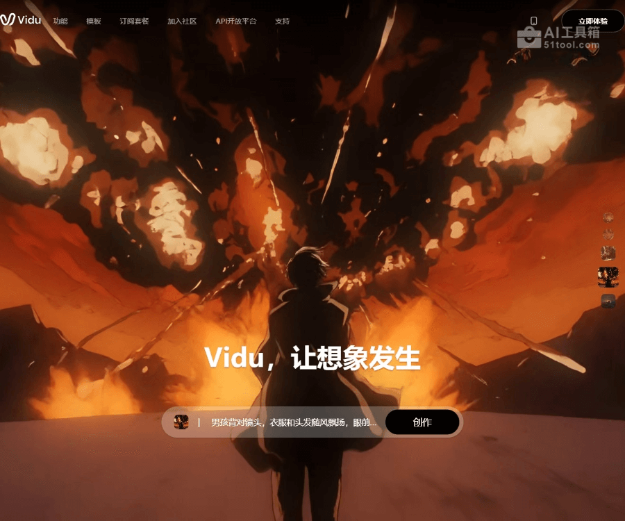 • 图片转视频:上传静态图片后,Vidu 可将其动态化,生成具有动画效果的视频。