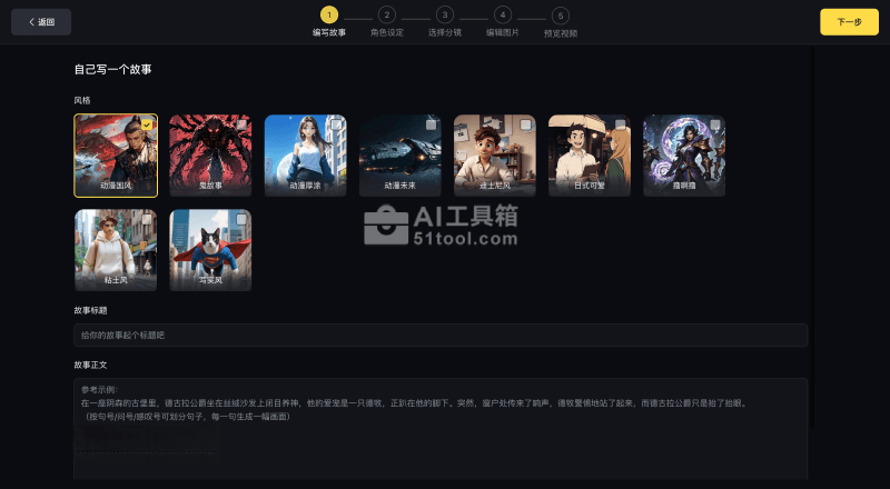 - 编写故事:在视频创作页,你需要编写自己的故事,如小说推文、原创故事等,确保故事内容适合转化为视频。