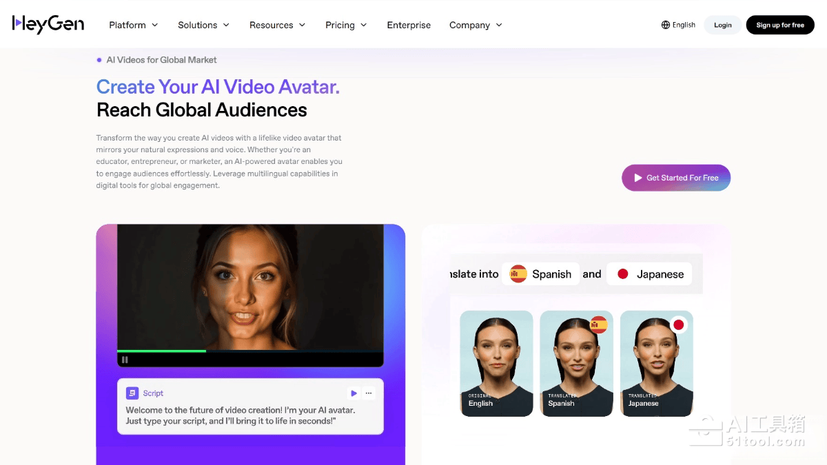 - AI 视频头像(AI Video Avatar):生成逼真的 AI 视频头像,支持多种语言和情感表达,