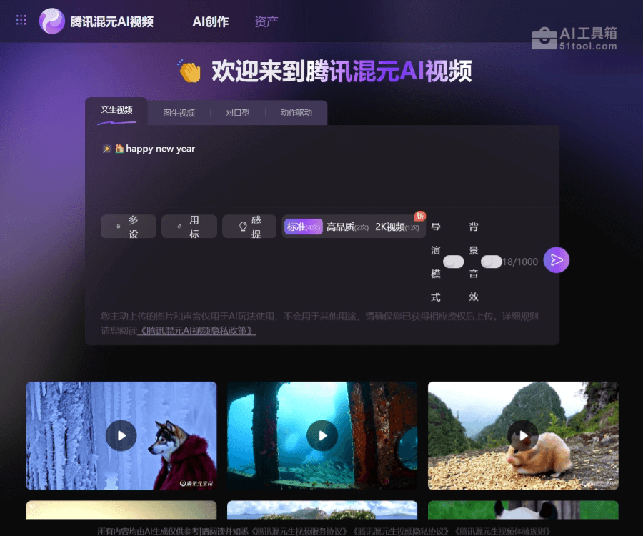 • 开始创作:登录后,进入创作页面,选择“图生视频”或“文生视频”等功能。